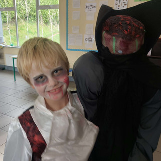 We had a fantastic day at school today! Everyone put in so much effort to dress up for Halloween, and we absolutely loved seeing all the creative and spooky costumes in each classroom. After finishing our morning assessments, we got to relax and enjoy a Halloween movie with popcorn, which was a big hit. To top it all off, we had a great time doing Zumba with Clare . They learned the dance Thriller.